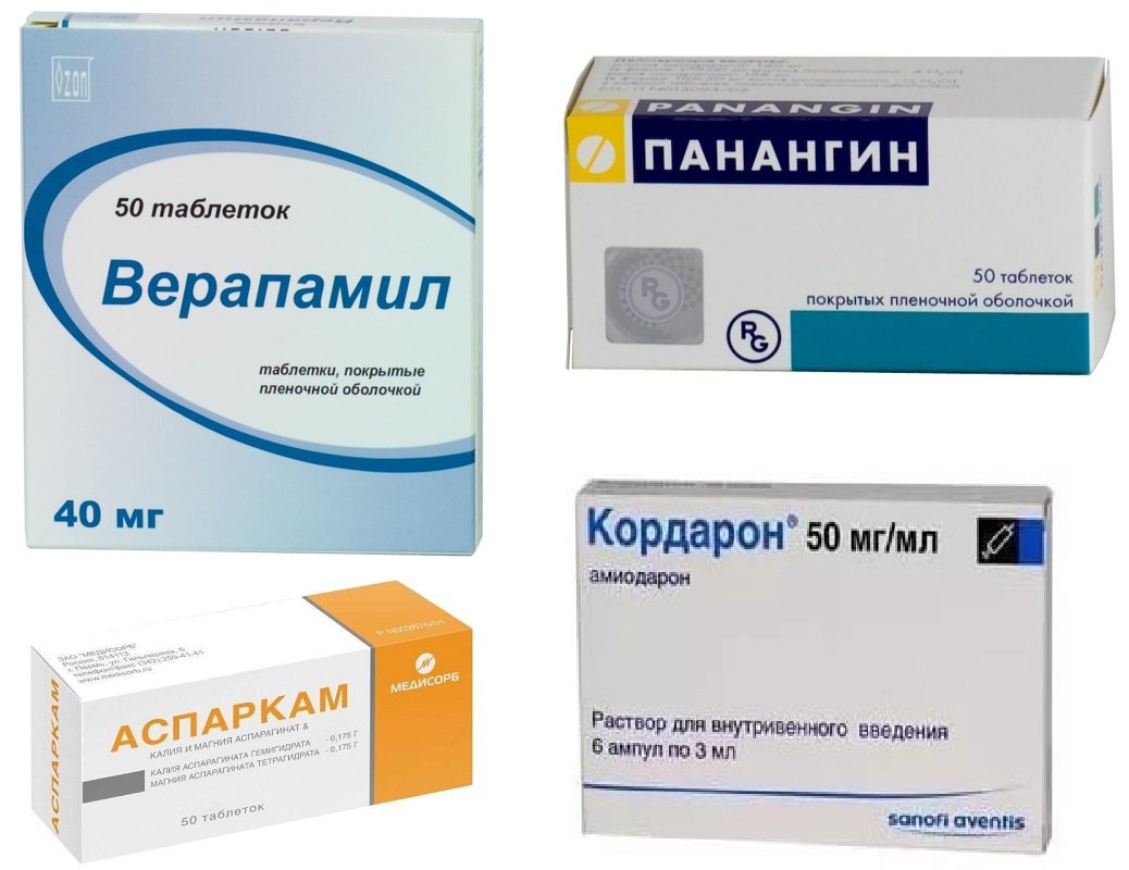 - антиаритмічні препарати для нормалізації серцевого ритму, вибір яких залежить від виду основного захворювання, наявності у пацієнта протипоказань до прийому медикаментів, індивідуальних особливостей організму;